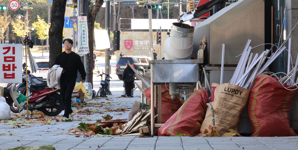 최근 지방 국립대 상권이 빠르게 무너지고 있다. 사진은 10일 충북대 인근에 있는 한 식당이 폐업하는 모습. 이승환 기자