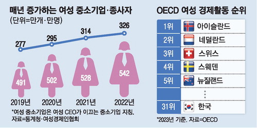 여성 기업이 늘어나면 여성 취업이 더 쉬워지는 선순환도 기대된다. 국가데이터처에 따르면 여성이 창업하거나 최고경영자로 있는 여성 기업에서는 여성 고용률이 71.7%에 달해,31.4%에 불과한 남성 기업보다 여성 고용률이 2.3배 높았다.