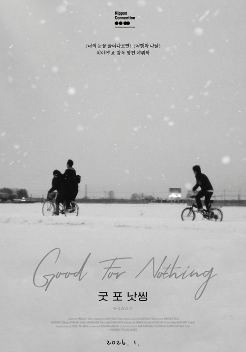 (사진 (주)디오시네마) 눈 덮인 12월의 삿포로,고등학교 졸업을 앞둔 ‘테츠오’(시바타 타카야),‘이와마’(타마이 히데키),‘타니’(산단 토모아키)는 선배 ‘이타미’(쿠시노 코이치)가 일하는 보안 경비 업체에서 아르바이트를 시작한다. 사장은 일거리도 많지 않은데 세 명이나 데려온 이타미가 못마땅하기만 하다. 자전거를 훔치며 거창한 성공이나 뚜렷한 목표도 없이 정처 없는 시간을 보내던 세 친구는,운전을 배우고 제 몫을 다하는 어엿한 어른이 되고자 노력하지만 예기치 못한 사건이 발생하며 사회의 쓴맛을 본다.감독이 스물 여섯에 발표한 첫 장편으로 2010년 당시 일본 현지에서도 일부 예술영화관에서만 상영되었을 뿐,온라인 플랫폼에도 잘 발견할 수 없었던 미야케 쇼 감독의 데뷔작이 오는 14일 한국에서 최초로 정식 개봉한다. 일본 영화의 ‘뉴 제너레이션’으로 불리는 그는 이 영화에서 감독,각본,촬영,편집,제작 등 1인 5역을 맡았다.(사진 (주)디오시네마) 겉으로는 무기력해 보일지 모르지만 내면에는 아주 작고 희미한 저항심이 자리잡고 있는 ‘테츠오’ 역의 시바타 타카야는 미야케 쇼 감독의 초창기 페르소나로,극의 중심을 잡는 동시에,어른이 되어가는 과정에서의 막막함과 서투름을 섬세하게 표현해냈다. 세 친구 중 사회로 나가기 직전의 막막함을 가장 투명하게 보여주는 ‘이와마’ 역의 타마이 히데키는 우리 주변에 있을 법한 평범한 청년의 얼굴 이면에 숨겨진 세밀한 불안과 흔들리는 눈빛을 자연스럽게 표현해낸다.선배 ‘이타미’ 역의 쿠시노 코이치는 후배들을 챙기려는 따뜻함이 있지만,정작 본인도 완벽히 어른의 세계에 뿌리내리지 못한 채 현실의 벽 앞에서 흔들리는 캐릭터를 입체적으로 연기해낸다. 미야케 쇼 감독의 다큐멘터리,워크숍 작품을 제외한 필모그래피 전반에 걸쳐 중요한 순간마다 등장하는 배우 아다치 토모미츠가 경찰 ‘지로’ 역을 맡아 과장되지 않고 담백한 연기로 극의 긴장감을 주도한다.(사진 (주)디오시네마) 특별할 것 없는 일상의 순간을 모아 인상에 깊게 남는 영화를 만드는 미야케 쇼 감독답게,‘굿 포 낫씽’은 제목 그대로 ‘쓸모 없는’ 순간들을 모아 비범하게 만든다. 드라마틱한 서사가 없는 ‘아무것도 아닌 이야기’로 보일 수도 있지만,무심코 지나치는 소음,빛의 미세한 변화,인물의 작은 제스처를 모아 만든 이미지들은 영화를 보는 동안 인물의 삶에 서서히 젖어 들게 만든다. 삿포로의 눈 덮인 거리 위로 흩어지는 무의미한 순간들은 소년들의 건조한 일상과 겹쳐지는 영화적 경험이다.흔들리는 짐칸에 올라타던 모습처럼 위태로웠던 셋의 모습이 기억에 오래 남는다. 어른이 되려다 번번이 길을 잃는 세 청춘이 순백의 삿포로 속을 떠도는 이야기를 강렬하게 담아낸 영화다. 14일 개봉,러닝타임 76분.[글 최재민 사진 (주)디오시네마][본 기사는 매일경제 Citylife 제1013호(26.01.13) 기사입니다]