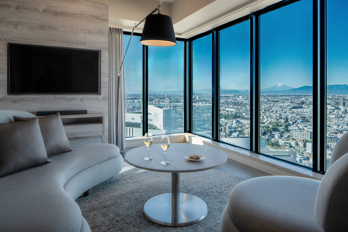 요코하마 전경이 한눈에 들어오는 OMO5 요코하마 바샤미치 by 호시노 리조트하우스 스위트 룸 / 사진=호시노 리조트 그룹 지난 1월 개관한 오모 파이브 요코하마 바샤미치는 가나가와현 요코하마에 자리한 시티 호텔이다. 미나토미라이 선 바샤미치 역과 바로 연결된 초고층 빌딩 최상층에 자리하고 지상 약 150m에서 바다·도심·베이 브리지를 파노라마로 볼 수 있다.