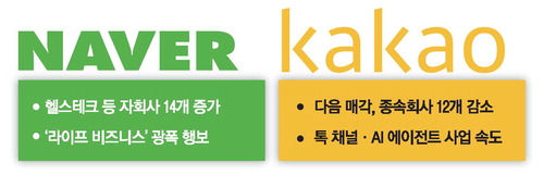 몸집 불리는 네이버 vs 군살 빼는 카카오 … 승자는?