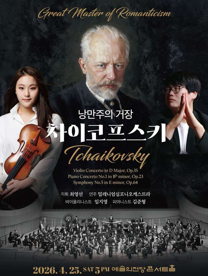 이번 공연은 지휘자 최영선의 지휘 아래 밀레니엄심포니오케스트라가 연주를 맡으며,세계 무대에서 활발히 활동하고 있는 바이올리니스트 임지영과 피아니스트 김준형이 협연자로 참여해 깊이 있는 해석과 뛰어난 연주력을 선보인다.