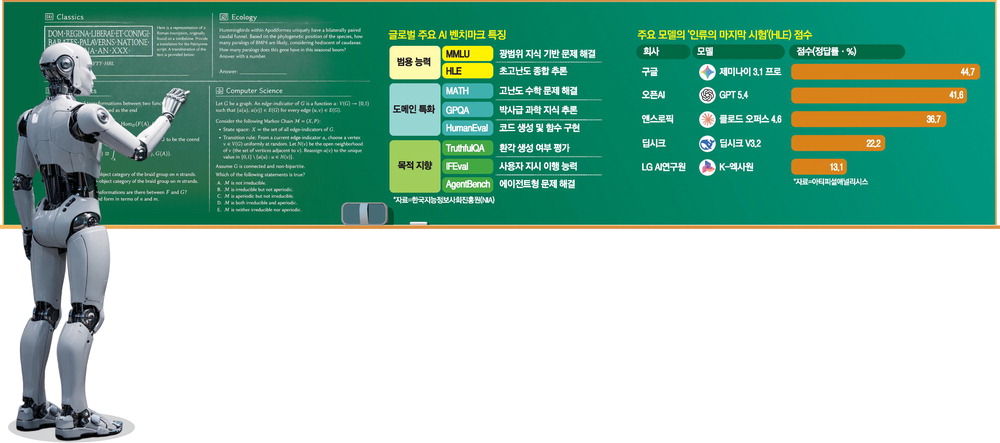 물리학 박사에게도 까다로운 이 문제는 인공지능(AI)이 치르는 시험 중 하나인 '인류의 마지막 시험(Humanity's Last Exam·HLE)'에 나오는 것이다. 사람이 특정 자격이나 능력을 인정받기 위해 시험을 치르듯 AI 모델들 역시 고난도 시험을 거쳐 탄생한다. 새로운 모델이 공개될 때마다 시험 점수가 꼬리표처럼 붙어 첫인상을 결정하기 때문에 AI 기업들은 자사 모델의 우수성을 입증하기 위해 평가 점수 올리기에 사활을 건다.
