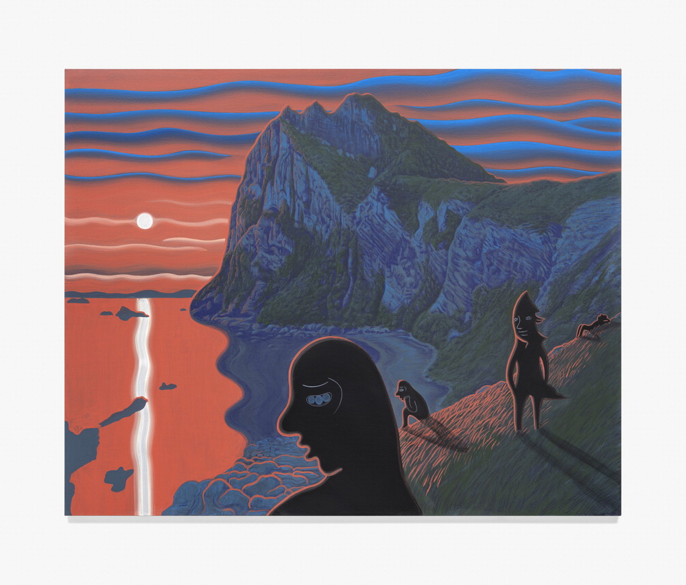 1층 전시장에서 제일 먼저 만나는 대표작 '새로운 시작 앞에서 우린 그렇게 아무 말 없이 있었어'는 제주 성산일출봉을 배경으로 한다. 노을 진 비탈길에 선 여러 인물,그중에서도 친구의 뒷모습을 멈춰 서서 바라보는 주인공의 모습이 쓸쓸한 정서를 자아낸다. 그 옆에 걸린 작품 '새벽녘 폭포 아래서'는 제주 정방폭포를 배경으로 한다. 아름다운 풍광의 이면에 '4·3 사건'의 아픈 역사가 서려 있는 곳이기도 하다. 작가는 폭포 아래 모여 사색하고,기타를 치고,포옹하거나 입맞춤하는 사람들의 모습을 통해 슬픔과 아름다움이 어스름한 새벽녘에 함께 공존하는 초현실적인 풍경을 그려낸다.