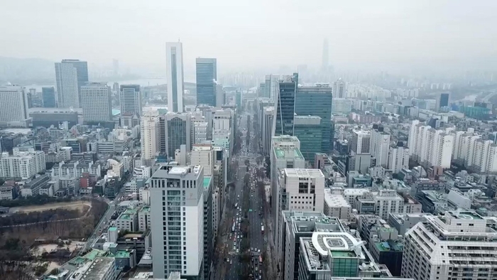 테헤란로의 강남 기업 빌딩. 사진과 기사는 관련 없음. [연헙뉴스] 전산업 전망치도 93.1로 4.5포인트 떨어지며 지난해 1월 이후 최대 낙폭을 기록했다.